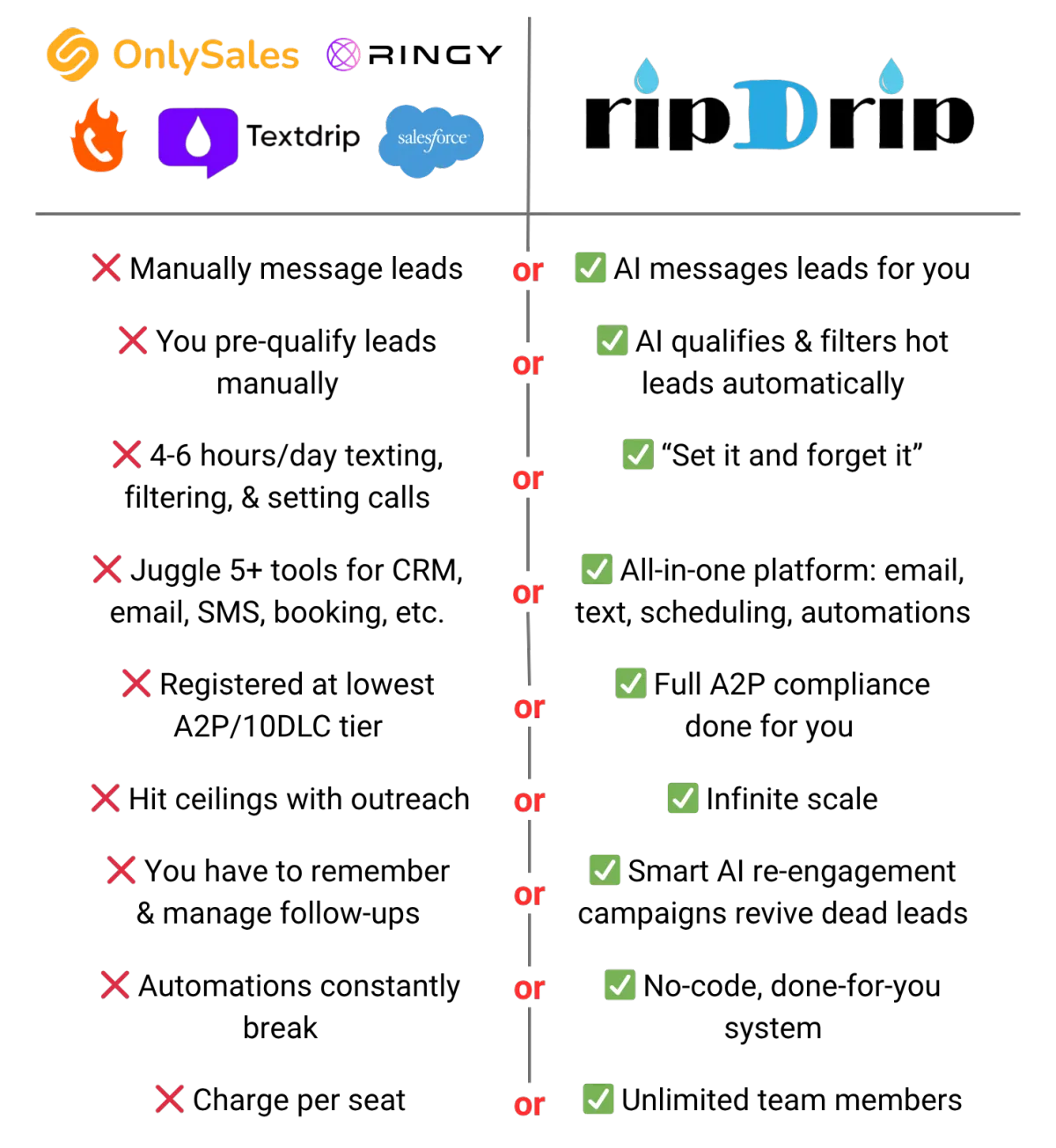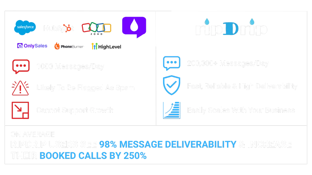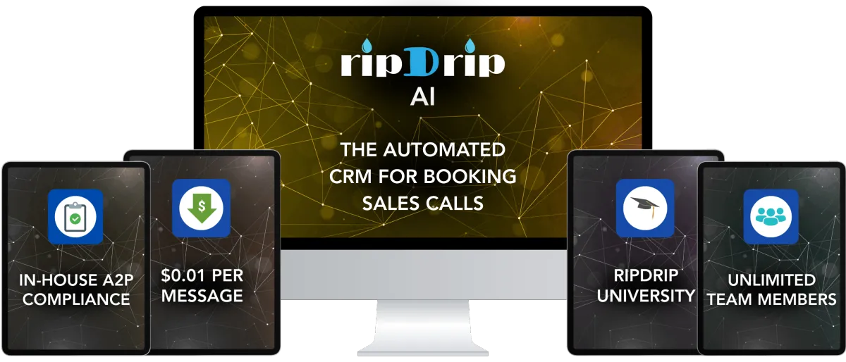 Results may vary based on your effort, market conditions, and implementation. RipDrip AI is a digital tool designed to assist with automating outreach and call booking but does not guarantee income or specific outcomes. This product is not affiliated with or endorsed by any carrier, CRM platform, or The Campaign Registry (TCR).