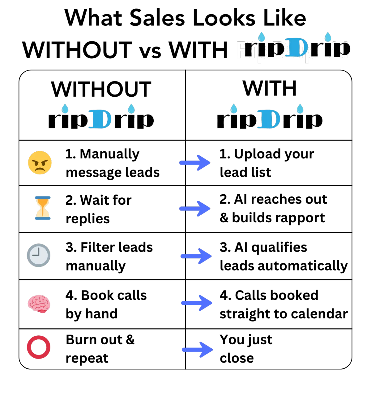 "This tool basically replaced all my manual labor. I still have to close, but RipDrip makes sure I'm only talking to people who are ready to buy.